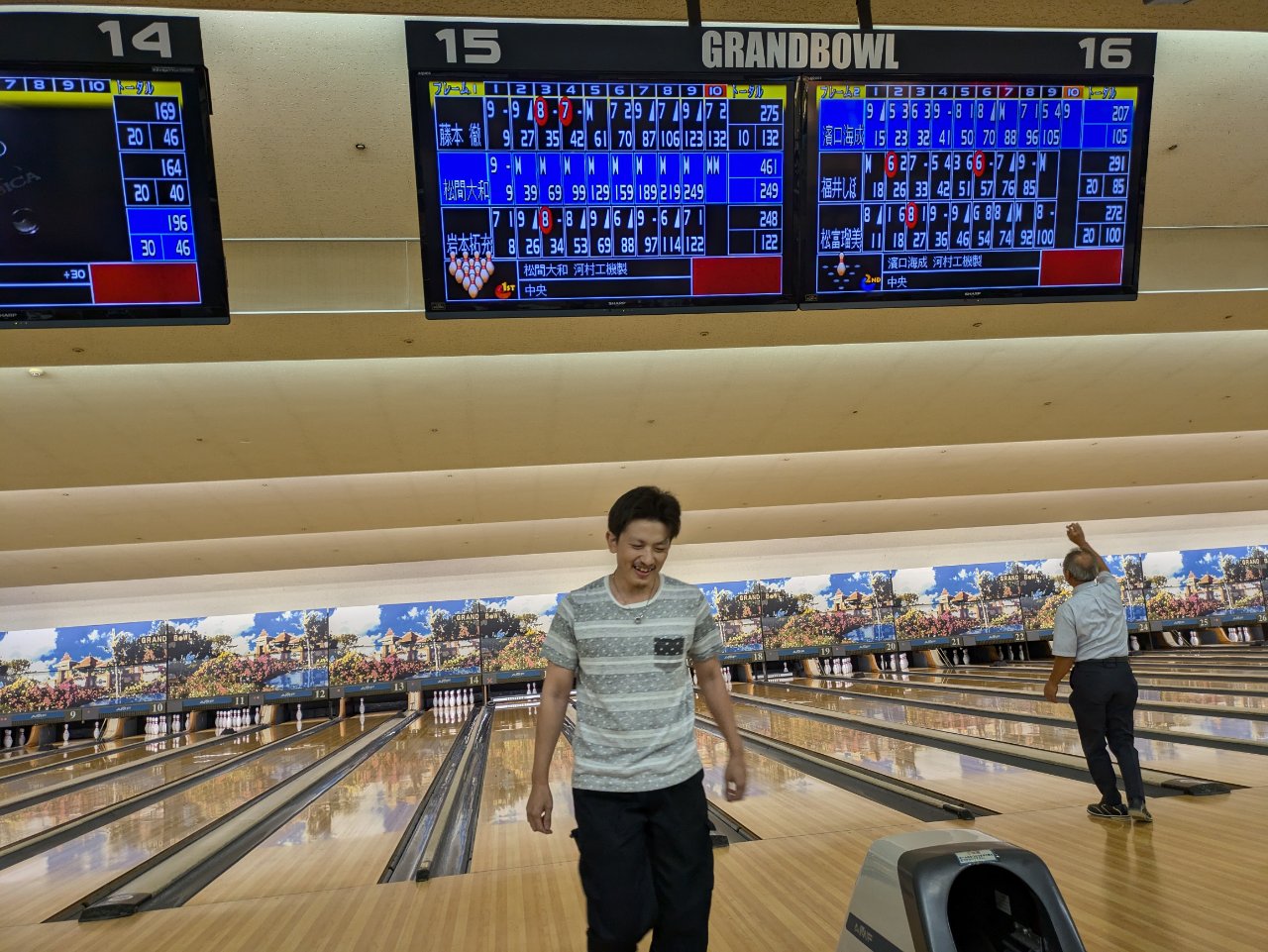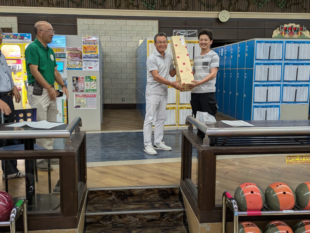 令和6年7月23日(金)19:00~半田グランドボウルにて開催されました、阿久比町商工会ボウリング大会に弊社ボウリング部員と私(社長)の6名で参加しました。その中の松間大和君がとんでもないハイスコアをたたき出し、89名の大会で見事優勝しちゃいました。1G:212、2G:277、TOTAL489!!2G目は2フレームから10フレームの2投まで10連続ストライク!