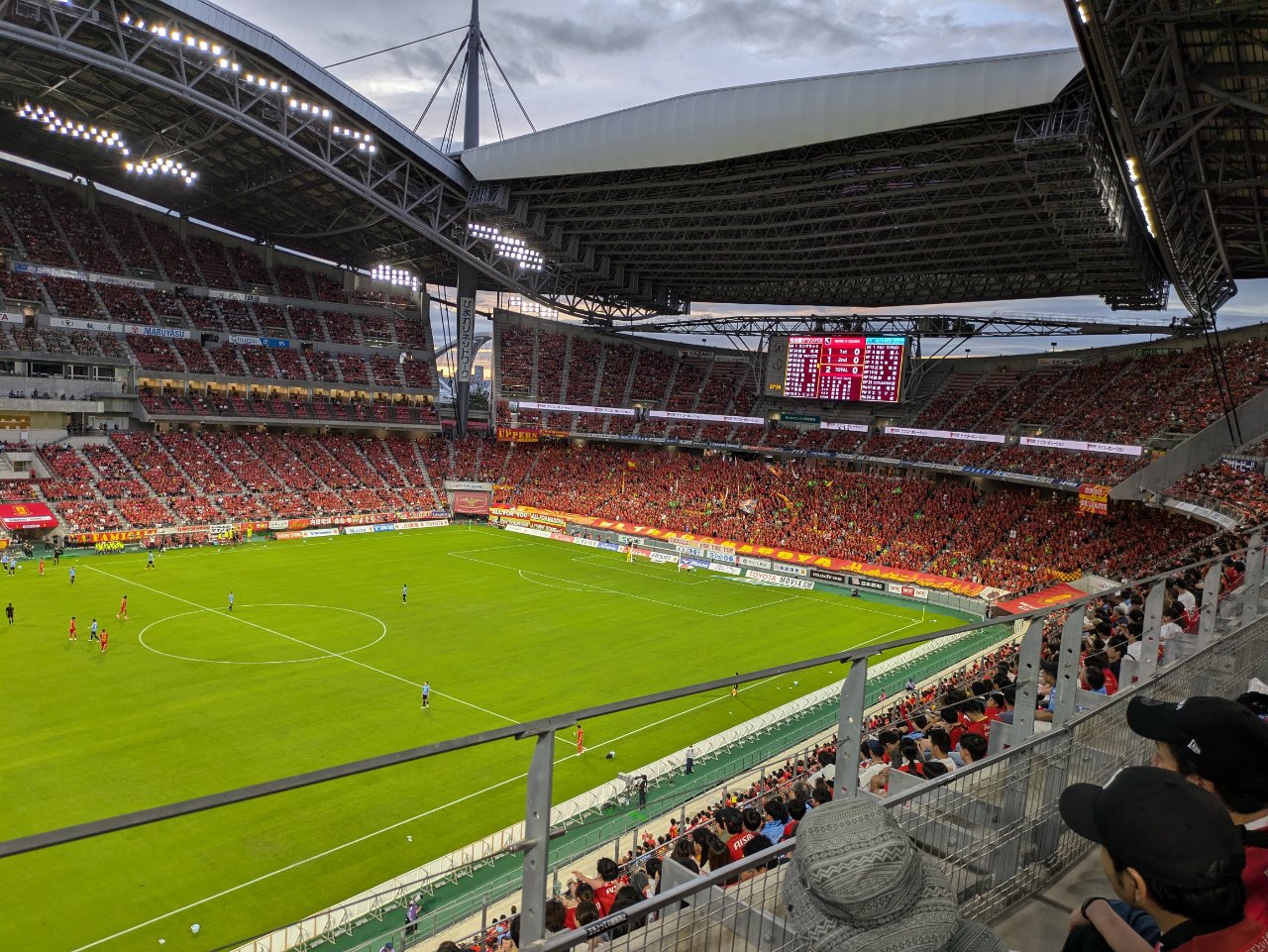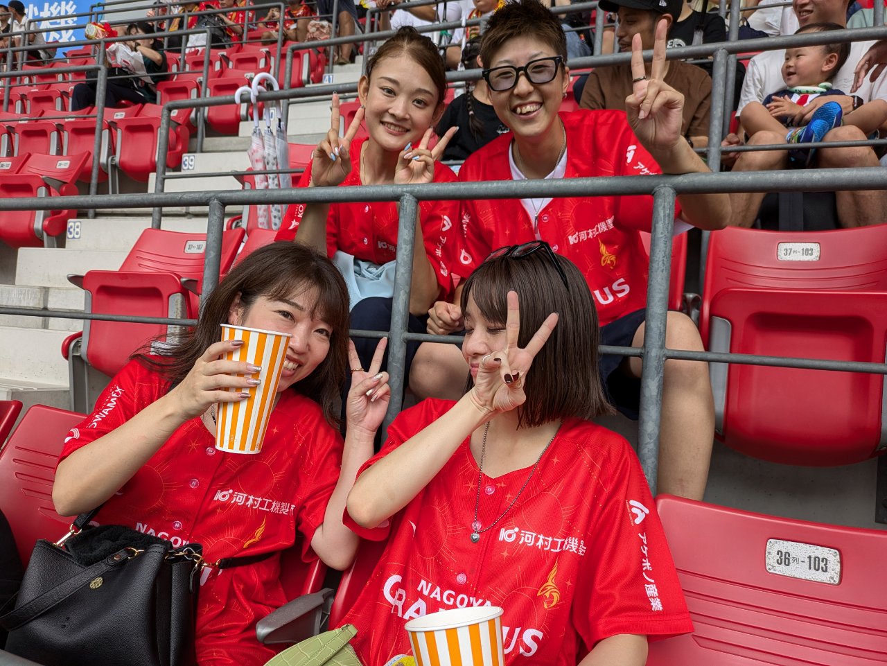 9月22日(日)朝10時から「鳴海ここよいまつり2024」に参加し、午後2時会社に集合してから観光バス1台に乗り込み、豊田スタジアムに向かいました。社員とその家族を含め総勢40人超(細かい人数は把握してませ)が3階スタンドでVS川崎フロンターレ戦を観戦しました。女性社員は入場の際もらったガールズユニフォームを早速着用してわーきゃー盛り上がっていました。試合の方も#18永井謙佑選手の見事な先制ゴールと、後半は#7和泉竜司が流れるような連携から2点目のゴールを決め結果は2-0の勝利となりました。応援の歓声やファンのどよめき、やっぱり生観戦の臨場感はすばらしいですね。