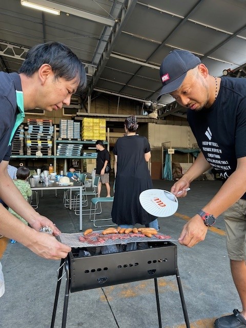 夏BBQ2025 2025 8/26 社長ブログ 2025年8月26日 令和7年8月8日(金)17:30~各工場・部署単位で、夏季連休前恒例となりましたBBQを実施しました。昨年から家族参加も増えてきて子供たちのよろこぶ姿に癒されます。これからも社員のコミュニケーションの場を増やしていきたいですね 阿久比工場① 阿久比工場②(若手?グループ) 阿久比工場③(スイカ割り…あたるかなー?) 阿久比工場④(戦利品のスイカ…結構ぐちゃぐちゃに) 本社工場①(真剣に焼いてます) 本社工場②(子供多いです、何の遊び?) 本社工場③(最後は花火大会?) 北九州工場①(新工場長は初) 北九州工場② 広島工場①(食材も気合が入っています) 広島工場②(焼き上がって呑みモードへ) 広島工場③ 広島工場④(社長も初参加~日本酒を美味しくいただきました) 広島工場⑤(ラッパのみじゃありません、瓶をマイク代わりにカラオケ) 社長ブログ 阿久比町商工会会員親睦ボウリング大会2025 2025プレナスなでしこリーグ1部 第16節 この記事を書いた人 kawamura-koki 関連記事 2025プレナスなでしこリーグ1部 第20節 2025年10月1日 行ってきましたグランパス ガールズフェスタ2025 2025年9月29日 2025プレナスなでしこリーグ1部 第19節 2025年9月25日 2025プレナスなでしこリーグ1部 第18節 2025年9月19日 2025プレナスなでしこリーグ1部 第17節 2025年9月11日 グランパス ガールズフェスタ2025 2025年9月10日 2025プレナスなでしこリーグ1部 第16節 2025年9月2日 阿久比町商工会会員親睦ボウリング大会2025 2025年7月30日
