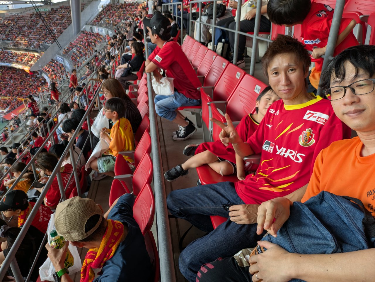 9/27(土)豊田スタジアムで明治安田J1リーグ第32節 鹿島アントラーズ戦(17:00キックオフ)にて『グランパス ガールズフェスタ2025』が開催されました。相手は8連勝中で首位の鹿島アントラーズ、グランパスはJ1残留をかけてなんとか勝ち点をあげたいところでしたが、試合結果は0-4で勝ち点は0でした。ガールズフェスタのユニフォームを着て観戦したいたガールズの方もみえて明るく盛り上がっていました。ちなみに来場者数は34,648 人、そのうち12,500人の女性来場者にユニフォームが配られました。すごい数の応援があります、残りの試合もガンバレ名古屋グランパス!