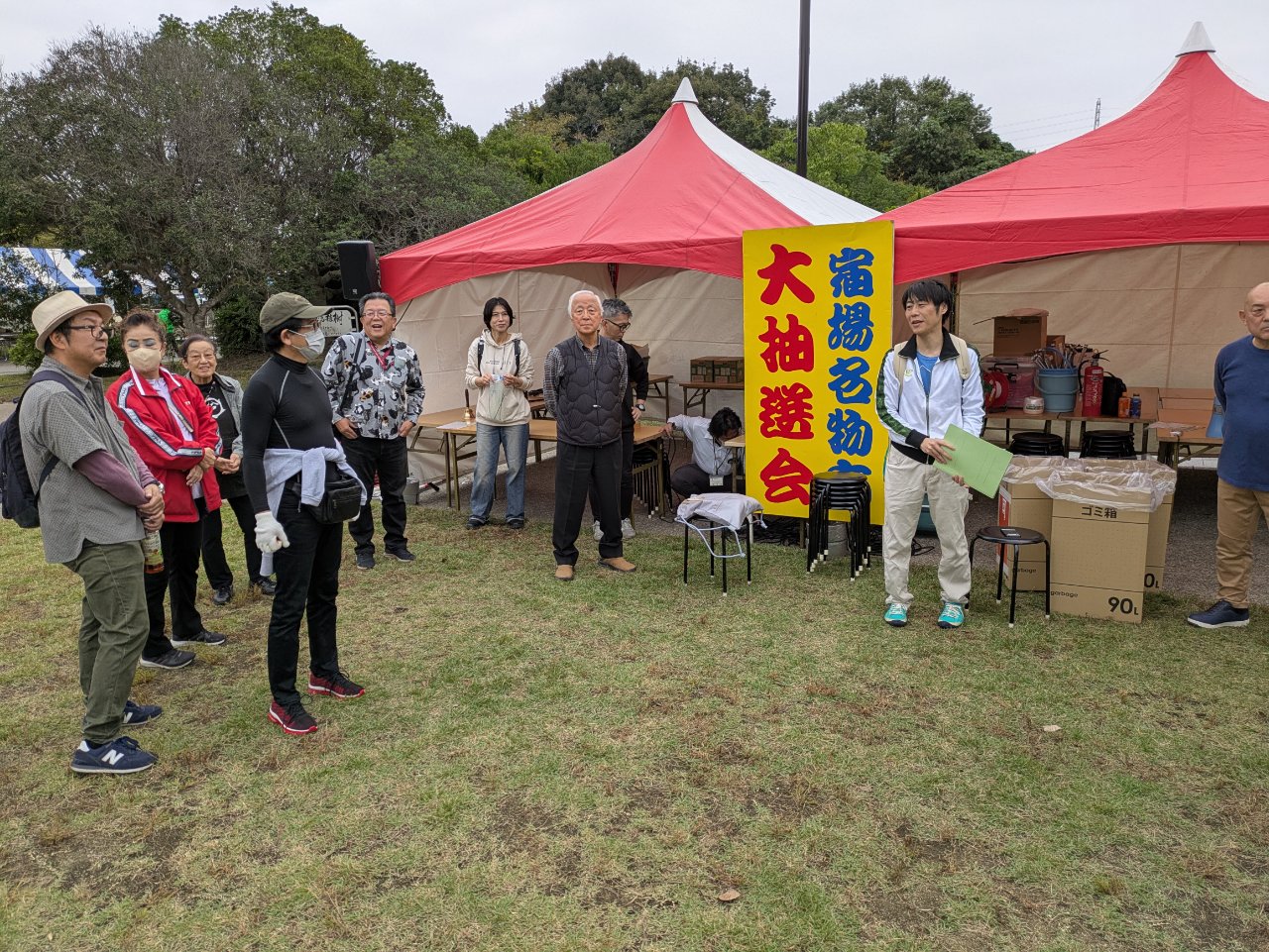 令和7年10月25(土)午前10時~午後3時、名古屋市緑区の大高緑地に於きまして緑区民まつりである「みどり・シティフェスティバル2025」が行われました。心配していた雨もなんとか終了時間までもち、元プロ野球選手G.G.佐藤さんのトークショーをはじめ盛りだくさんなイベントや出店で今年も盛況のうちに終えることができました。鳴海商工会は毎年恒例の宿場名物市と称した抽選会やガチャなどお子様連れを中心に一喜一憂?盛り上がりました。来年もご来場お待ちしております