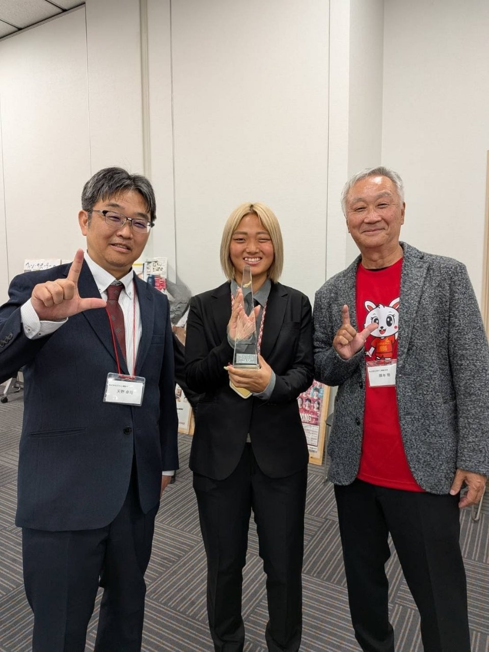 #3平尾愛穂選手(ベストイレブン・弊社OG・弊社専務と)