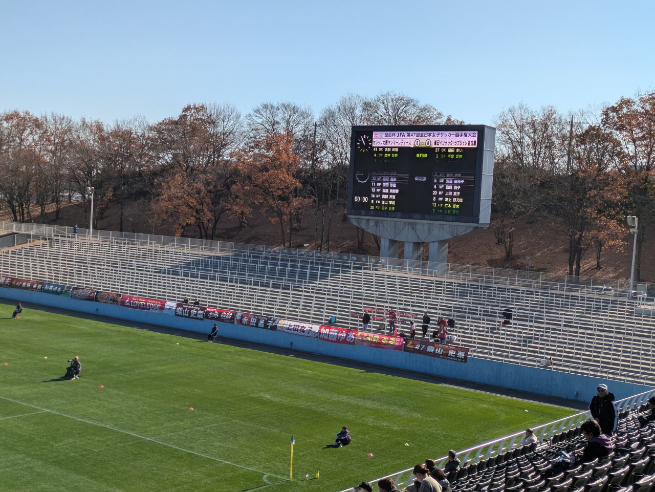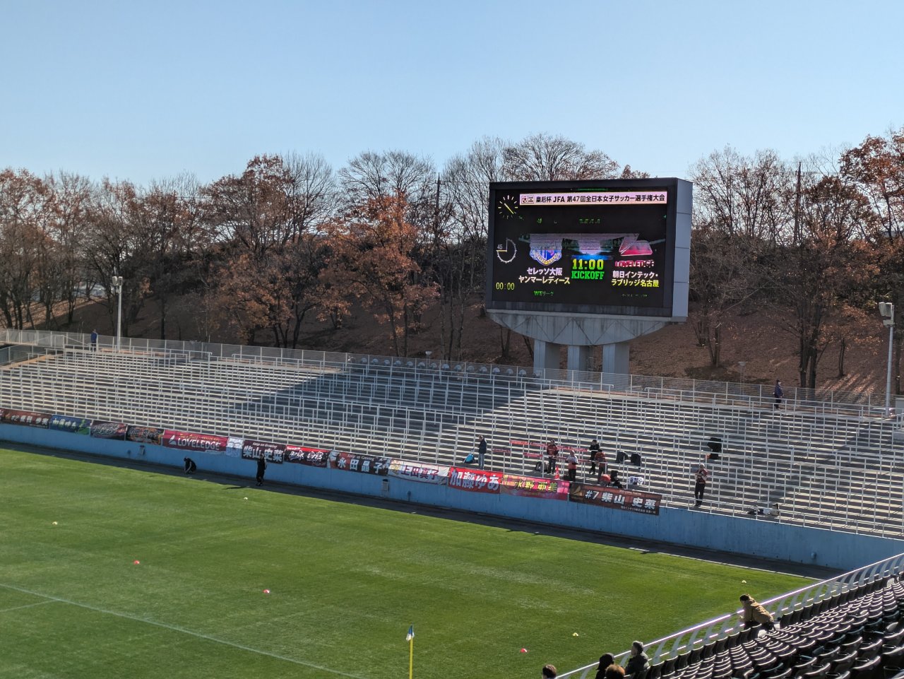 栃木県宇都宮まで新幹線で、そこからレンタカーでスタジアムへ向かいました。ひょっとして初めましての場所?と思いながら現地へ到着。スタジアムに近づくにつれて記憶がよみがえりました。来た事ある場所でした。本日はいよいよベスト4をかけた準々決勝VSセレッソ大阪ヤンマーレディース戦です。前節で同じWEリーグの長野に勝利した勢いでいけばこの試合もいけるんじゃないか、と期待の膨らむ観戦です。天気もピッチコンディションも最高の条件が整いました、いざキック・オフ!