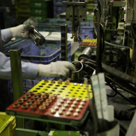 自動車マフラーの部品として欠かせない、バルジパイプの生産ライン。レギュレーションを厳守した高品質の部品が次々と生まれていきます。最後は人の手と目で細かに検査。安定した品質を保持するために欠かせない工程です。