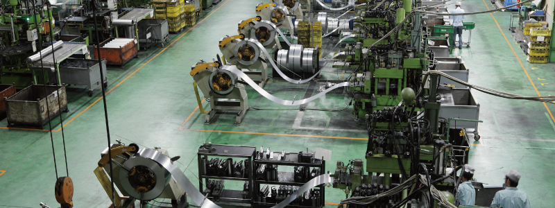 金属プレス加工だけではなく、溶接組み付けラインも工場内に設備。より付加価値のある製品をお客さまに提供しています。